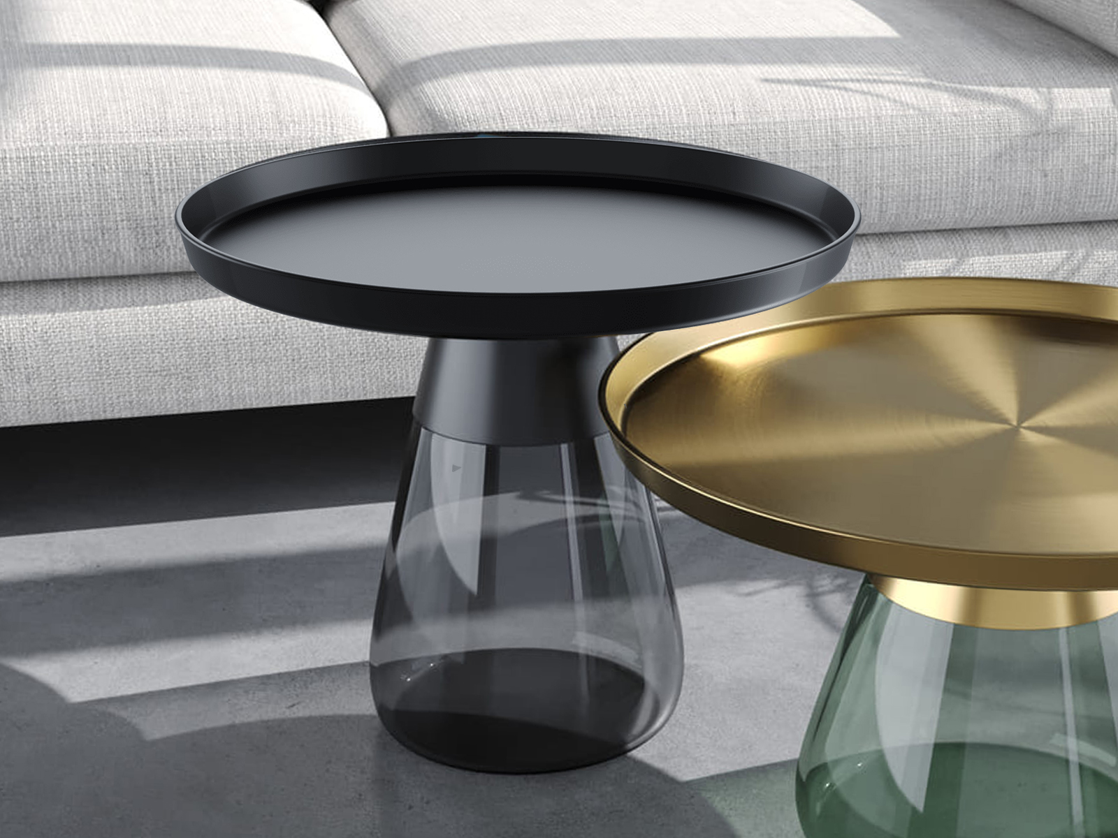 Le bout de canapé Carpi est élégant et original. Il s’associe parfaitement à la table basse de la même gamme et trouvera facilement sa place dans votre salon. Laissez-vous séduire par son plateau couleur bronze ou noir et sa base en verre de 52 cm de hauteur.
