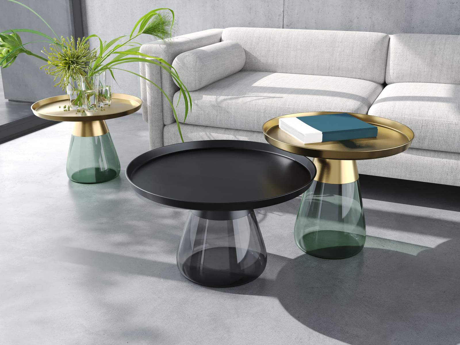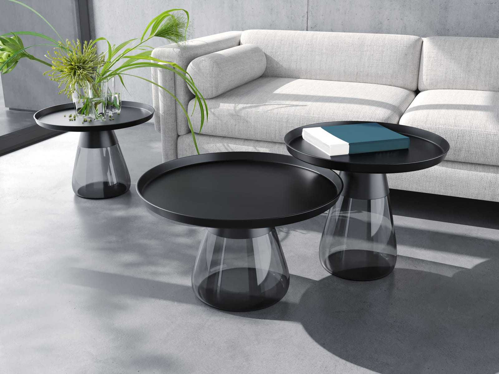 Osez l’originalité avec la nouvelle table basse Carpi. Elle se démarque grâce à sa forme de goutte d’eau et offre un jeu de transparence avec sa base en verre. La table basse mesure 43 cm de hauteur. Pour un salon harmonieux, assortissez la table basse aux bouts de canapés.