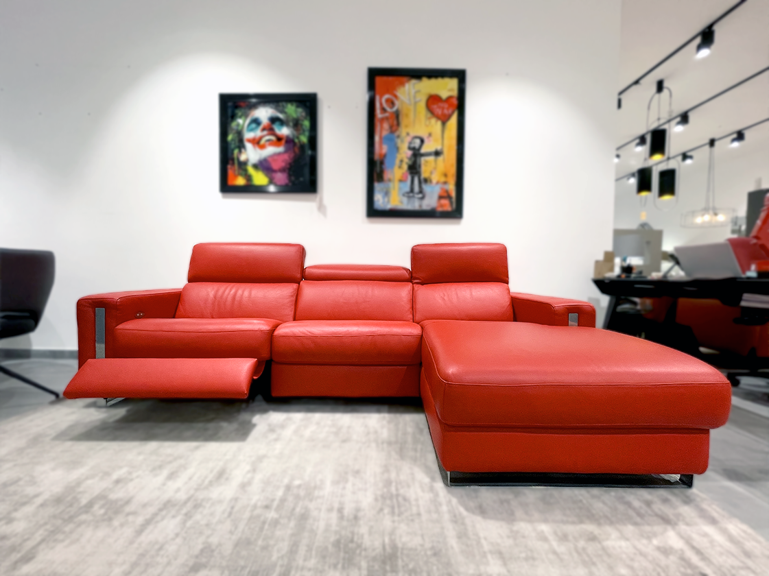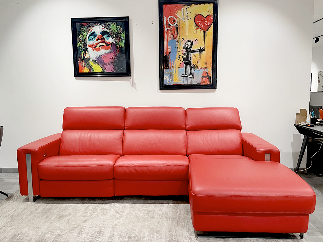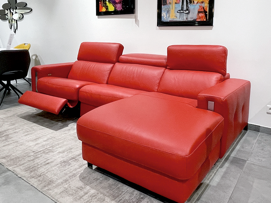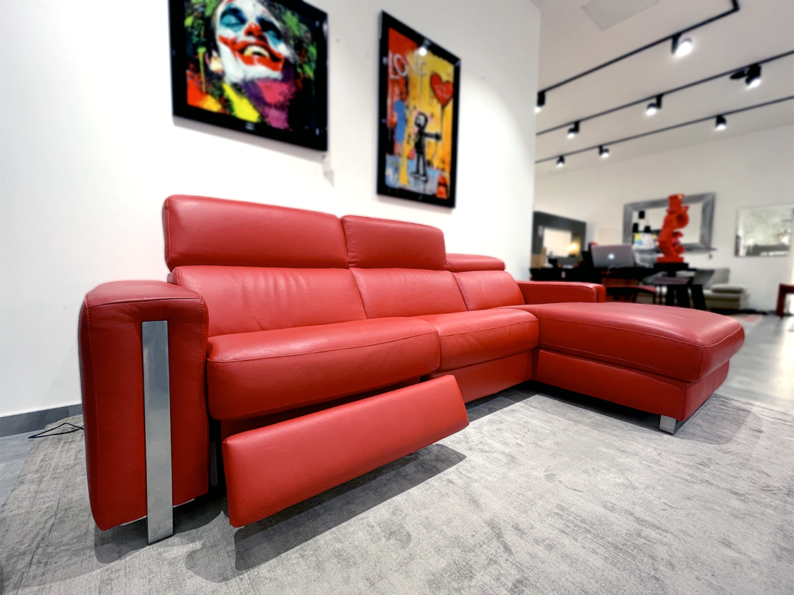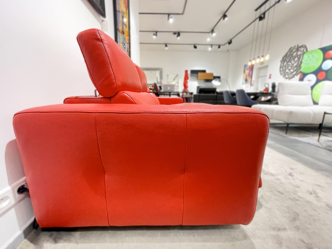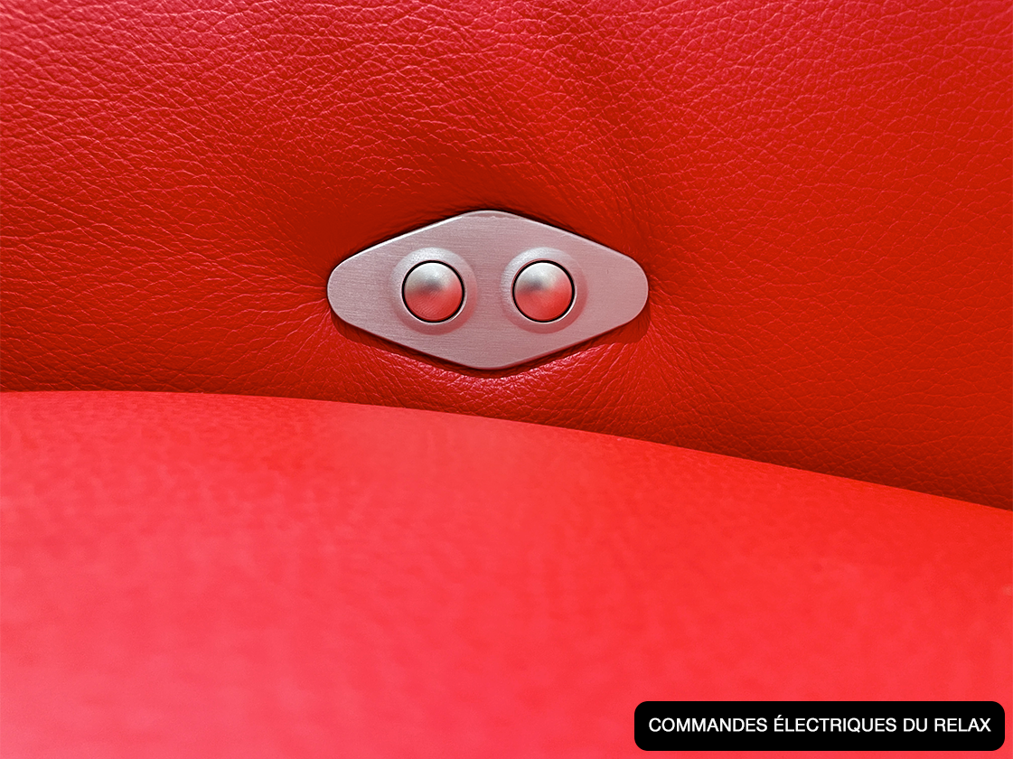 Revêtu d’un cuir rouge intense, ce canapé d’angle séduit autant par son élégance que par son confort exceptionnel.